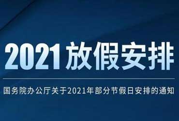 经国务院批准,现将2021年元旦、春节、清明节、劳动节、端午节、中秋节和国庆节放假调休日期的具体安排通知如下。