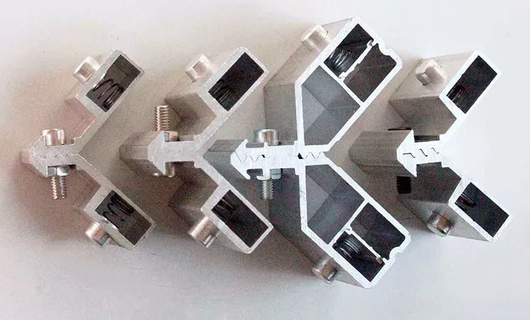 一般来说,销钉实际上是定位器和螺钉的组合,即用角度码来定位。同时,它可以像螺钉一样连接和紧固,但稳定性远远优于螺钉和定位器。最后,胶水注入是一种特殊的胶水,用于填充角代码和型材之间。专业名称为角胶集团,就像中国家具传统的榫卯连接结构。在连接之前,榫卯的接触面经常涂上木匠胶,这样可以使连接更牢固,即使被击中也不容易松动。