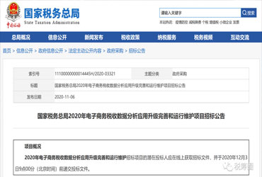 在国家税务总局网站上,“2020年电子商务税收数据分析、应用、改进及运维项目”招标公告已经发布。电子商务行业已经走上了对大数据系统严格管理的道路。各行各业依法纳税是大势所趋,电子商务行业也不例外!